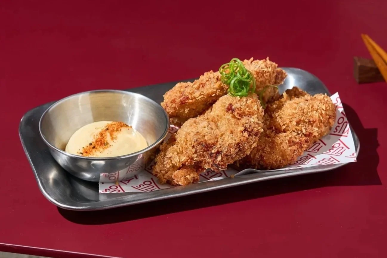pulpă de pui marinata 24h | usturoi | ghimbir | soia | sake | mirin | făină | panko | ceapă verde |